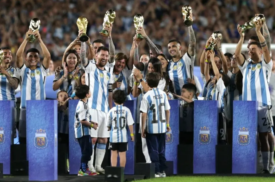 在赢得2022年世界杯之后,阿根廷足协在2023年3月23日对巴拿马一战举行了盛大的夺冠庆祝典礼。值得一提的是,梅西在这场比赛里打入了职业生涯的第800球。