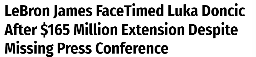 相互尊重!曝詹姆斯已与东契奇视频通话:祝贺他签下1.65亿新合同