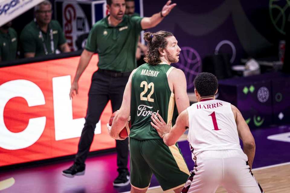 本场比赛中,澳大利亚队的先发中锋威尔-马格奈(Will Magnay)的表现还是非常稳定的。马格奈全场出场21分32秒,投篮5中5,以100%的命中率拿下了10分6篮板2助攻1抢断1盖帽的数据,还有2次失误和2次犯规,正负值也是达到了+18。马格奈其实并没有得到什么太多的出手机会,但是他却是展现出了超强的篮下得分能力和终结能力,他也是抓住了机会得到了一些分数。不仅如此,马格奈在防守端也是展现出了不俗的内线防守能力,他也是能够在防守端起到很好的效果的。攻防两端都能够有所发挥,马格奈在场上的作用确实是非常突出的。